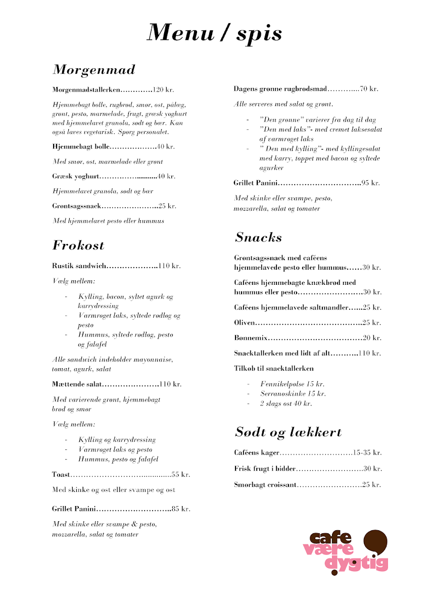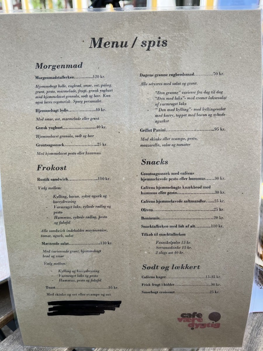 Café Væredygtig takes pride in its mindful approach to food, offering a menu that includes a range of delicious breakfast and lunch items alongside refreshing snacks. Patrons rave about the Morgenmadstallerken, a wholesome breakfast plate featuring freshly baked bread, creamy butter, a selection of cheeses and cold cuts, seasonal fruits, and velvety Greek yogurt topped with honey or syrup, sprinkled with house-made granola. Priced at DKK 120.00, this meal is a soul-soothing way to start your day.